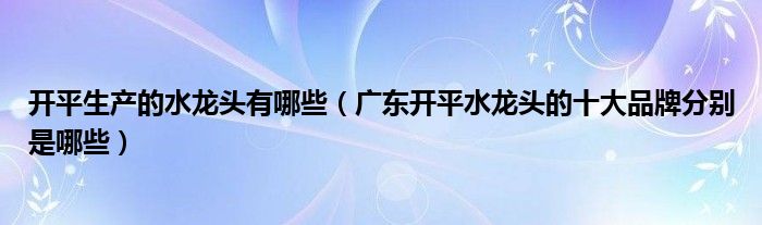 导读 大家好,精选小编来为大家解答以上的问题。开平生产的水龙头有哪些,广东开平水龙头的十大品牌分别是哪些很多人还不知道,现在让我们一起来