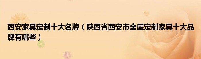 导读 大家好,精选小编来为大家解答以上的问题。西安家具定制十大名牌,陕西省西安市全屋定制家具十大品牌有哪些很多人还不知道,现在让我们一起