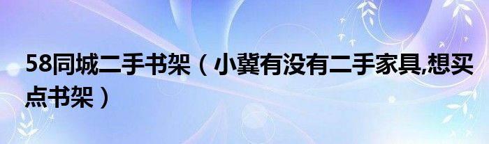 大家好,精选小编来为大家解答以上的问题。58同城二手书架,小冀有没有二手家具,想买点书架很多人还不知道,现在让我们一起来看看吧!