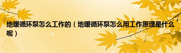 地暖循环泵怎么工作的(地暖循环泵怎么用工作原理是什么呢)