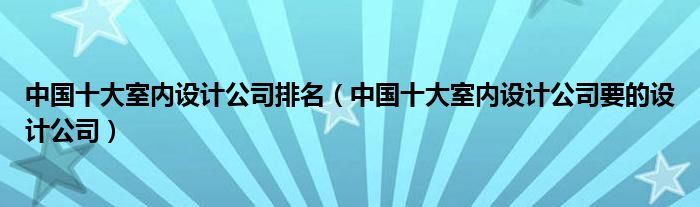 中国十大室内设计公司排名(中国十大室内设计公司要的设计公司)