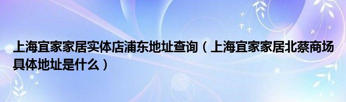 上海宜家家居实体店浦东地址查询(上海宜家家居北蔡商场具体地址是什么)