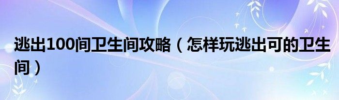 逃出100间卫生间攻略(怎样玩逃出可的卫生间)