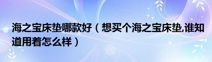 导读 大家好,精选小编来为大家解答以上的问题。海之宝床垫哪款好,想买个海之宝床垫,谁知道用着怎么样很多人还不知道,现在让我们一起来看看吧