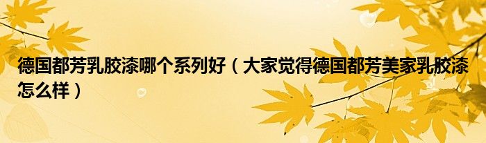 德国都芳乳胶漆哪个系列好(大家觉得德国都芳美家乳胶漆怎么样)