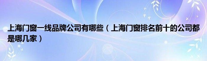 导读 大家好,精选小编来为大家解答以上的问题。上海门窗一线品牌公司有哪些,上海门窗排名前十的公司都是哪几家很多人还不知道,现在让我们一起