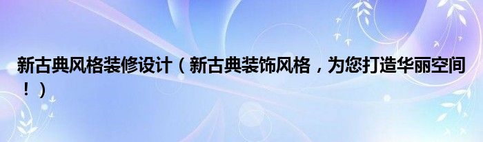 新古典风格装修设计(新古典装饰风格,为您打造华丽空间!)