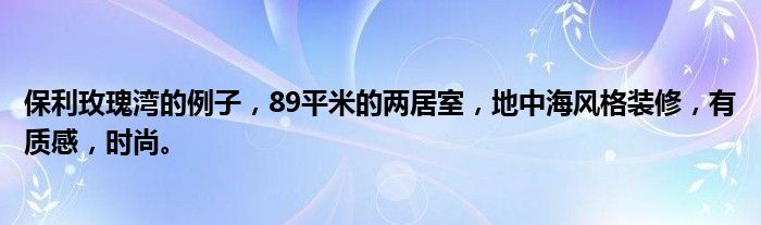 保利玫瑰湾的例子,89平米的两居室,地中海风格装修,有质感,时尚。