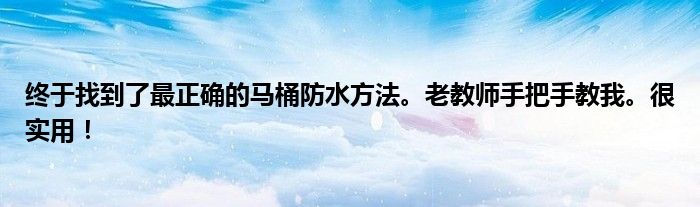 大家好,今天乐乐来为大家解答以上问题。终于找到了最正确的马桶防水方法。老教师手把手教我。很实用!很多人还不知道,现在让我们一起来看看吧!