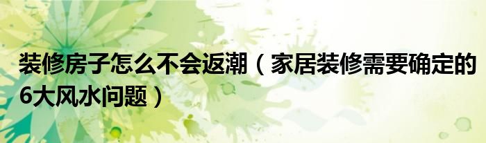 装修房子怎么不会返潮(家居装修需要确定的6大风水问题)