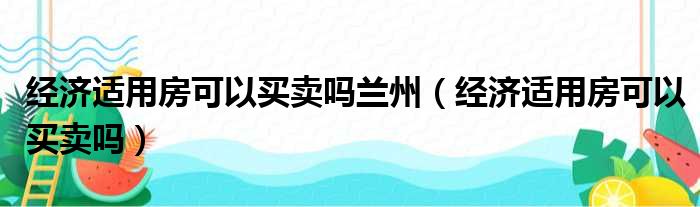 经济适用房可以买卖吗兰州(经济适用房可以买卖吗)