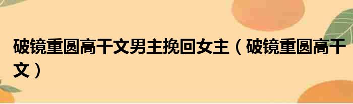 大家好,今天小六子来为大家解答以下的问题,关于破镜重圆高干文男主挽回女主,破镜重圆高干文这个很多人还不知道,现在让我们一起来看看吧!