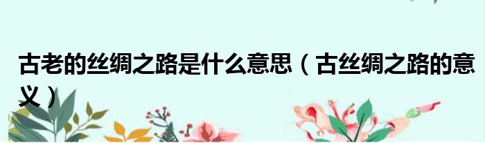古老的丝绸之路是什么意思(古丝绸之路的意义)