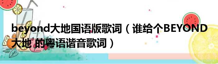 大家好,今天小六子来为大家解答以下的问题,关于beyond大地国语版歌词,谁给个BEYOND 大地 的粤语谐音歌词这个很多人还不知道,现在让我们一起来看看吧!