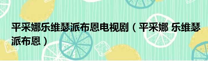 平采娜乐维瑟派布恩电视剧(平采娜 乐维瑟派布恩)
