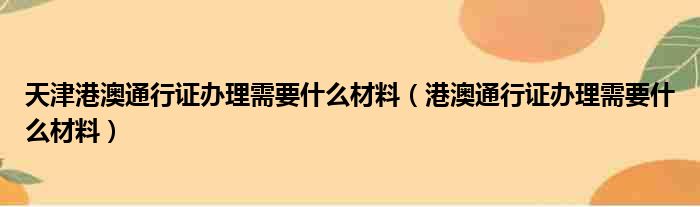 天津港澳通行证办理需要什么材料(港澳通行证办理需要什么材料)