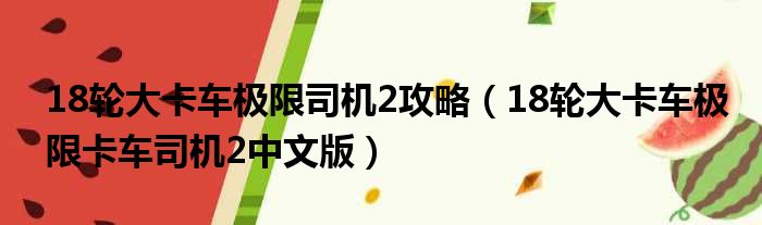 18轮大卡车极限司机2攻略(18轮大卡车极限卡车司机2中文版)