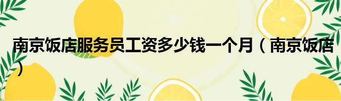 南京饭店服务员工资多少钱一个月(南京饭店)