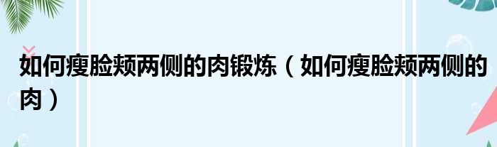 如何瘦脸颊两侧的肉锻炼(如何瘦脸颊两侧的肉)