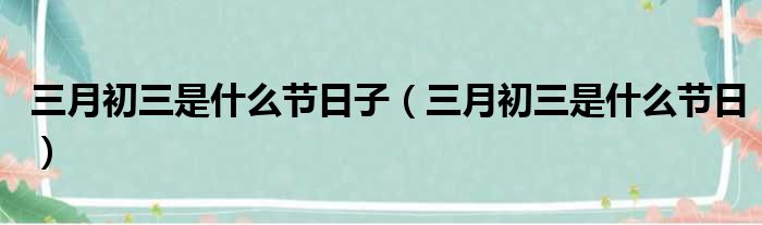 导读 大家好,今天小六子来为大家解答以下的问题,关于三月初三是什么节日子,三月初三是什么节日这个很多人还不知道,现在让我们一起来看看吧!1