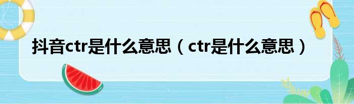 导读 大家好,今天小六子来为大家解答以下的问题,关于抖音ctr是什么意思,ctr是什么意思这个很多人还不知道,现在让我们一起来看看吧!1、CTR是