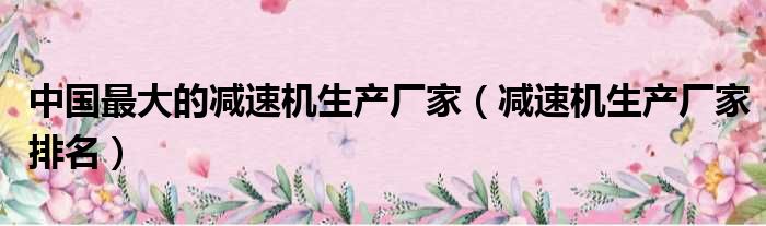 中国最大的减速机生产厂家(减速机生产厂家排名)