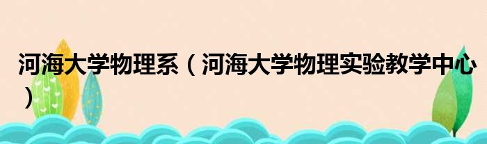 导读 大家好,今天小六子来为大家解答以下的问题,关于河海大学物理系,河海大学物理实验教学中心这个很多人还不知道,现在让我们一起来看看吧!1