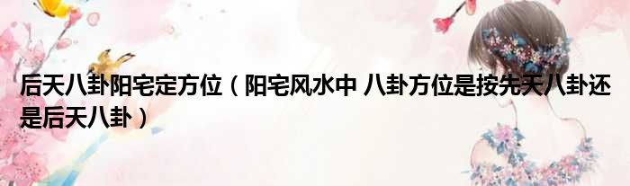 导读 大家好,今天小六子来为大家解答以下的问题,关于后天八卦阳宅定方位,阳宅风水中 八卦方位是按先天八卦还是后天八卦这个很多人还不知道,