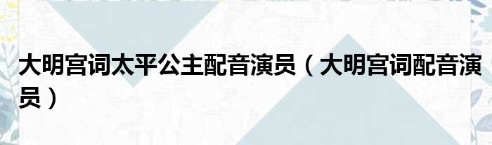 导读 大家好,今天小六子来为大家解答以下的问题,关于大明宫词太平公主配音演员,大明宫词配音演员这个很多人还不知道,现在让我们一起来看看吧
