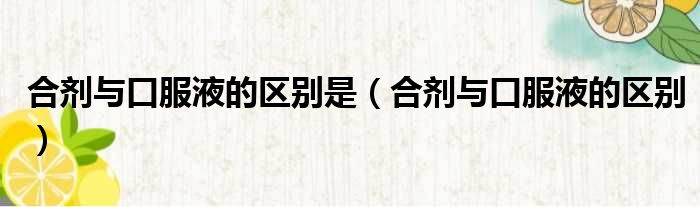 导读 大家好,今天小六子来为大家解答以下的问题,关于合剂与口服液的区别是,合剂与口服液的区别这个很多人还不知道,现在让我们一起来看看吧!1