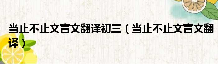 当止不止文言文翻译初三(当止不止文言文翻译)