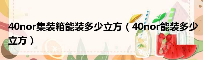 导读 大家好,今天小六子来为大家解答以下的问题,关于40nor集装箱能装多少立方,40nor能装多少立方这个很多人还不知道,现在让我们一起来看看吧