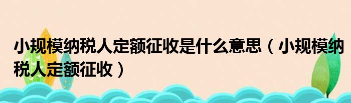 小规模纳税人定额征收是什么意思(小规模纳税人定额征收)