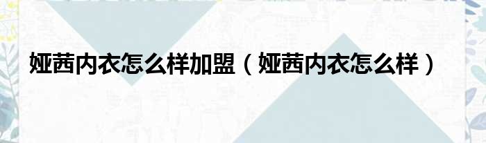 娅茜内衣怎么样加盟(娅茜内衣怎么样)