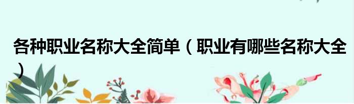 导读 大家好,今天小六子来为大家解答以下的问题,关于各种职业名称大全简单,职业有哪些名称大全这个很多人还不知道,现在让我们一起来看看吧!1