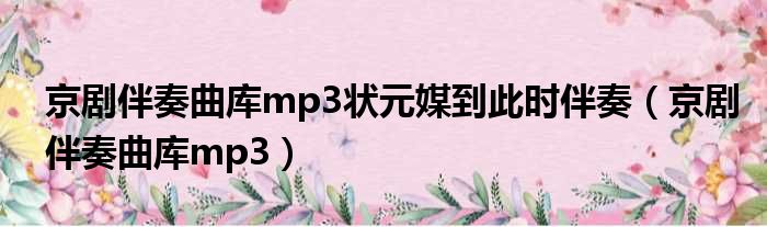 京剧伴奏曲库mp3状元媒到此时伴奏(京剧伴奏曲库mp3)