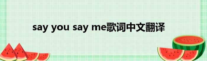 导读 大家好,今天小六子来为大家解答以下的问题,关于say you say me歌词中文翻译这个很多人还不知道,现在让我们一起来看看吧!1、说你,说