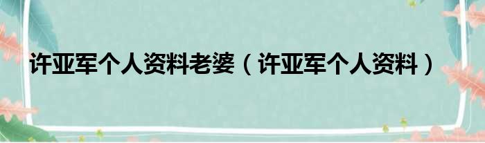 导读 大家好,今天小六子来为大家解答以下的问题,关于许亚军个人资料老婆,许亚军个人资料这个很多人还不知道,现在让我们一起来看看吧!1、姓名