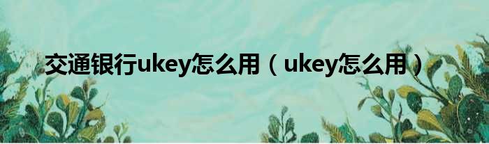 交通银行ukey怎么用(ukey怎么用)
