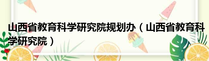 山西省教育科学研究院规划办(山西省教育科学研究院)