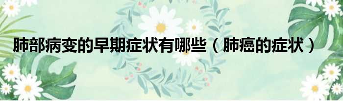大家好,今天小六子来为大家解答以下的问题,关于肺部病变的早期症状有哪些,肺癌的症状这个很多人还不知道,现在让我们一起来看看吧!