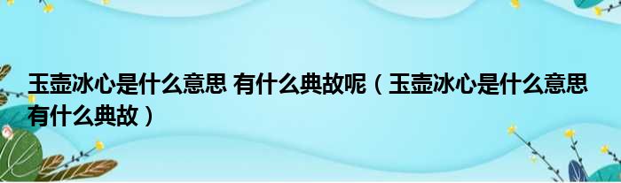 玉壶冰心是什么意思 有什么典故呢(玉壶冰心是什么意思 有什么典故)