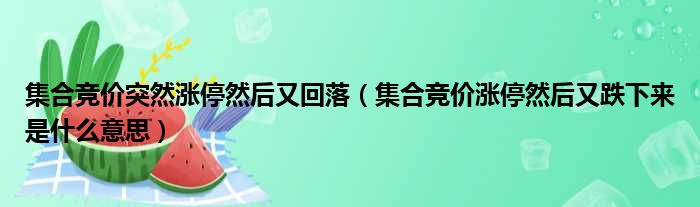 集合竞价突然涨停然后又回落(集合竞价涨停然后又跌下来是什么意思)