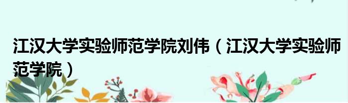 导读 大家好,今天小六子来为大家解答以下的问题,关于江汉大学实验师范学院刘伟,江汉大学实验师范学院这个很多人还不知道,现在让我们一起来看