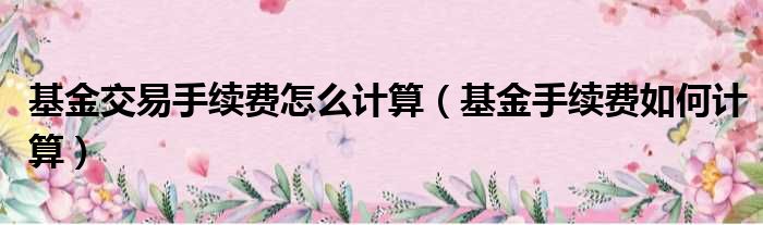 大家好,今天小六子来为大家解答以下的问题,关于基金交易手续费怎么计算,基金手续费如何计算这个很多人还不知道,现在让我们一起来看看吧!
