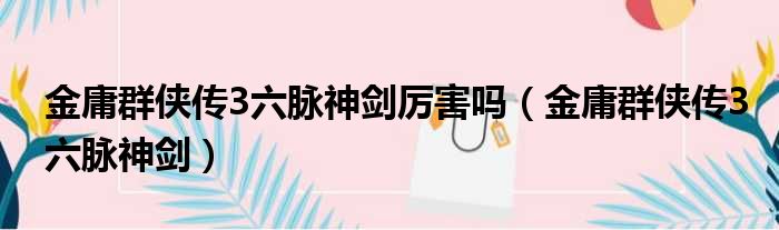 导读 大家好,今天小六子来为大家解答以下的问题,关于金庸群侠传3六脉神剑厉害吗,金庸群侠传3六脉神剑这个很多人还不知道,现在让我们一起来看