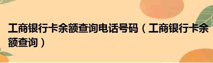 工商银行卡余额查询电话号码(工商银行卡余额查询)