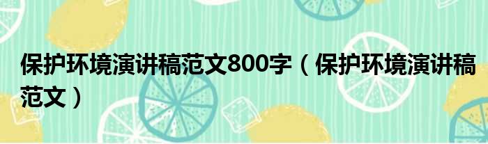 保护环境演讲稿范文800字(保护环境演讲稿范文)