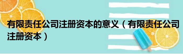 有限责任公司注册资本的意义(有限责任公司注册资本)