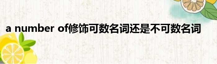 大家好,今天小六子来为大家解答以下的问题,关于a number of修饰可数名词还是不可数名词这个很多人还不知道,现在让我们一起来看看吧!
